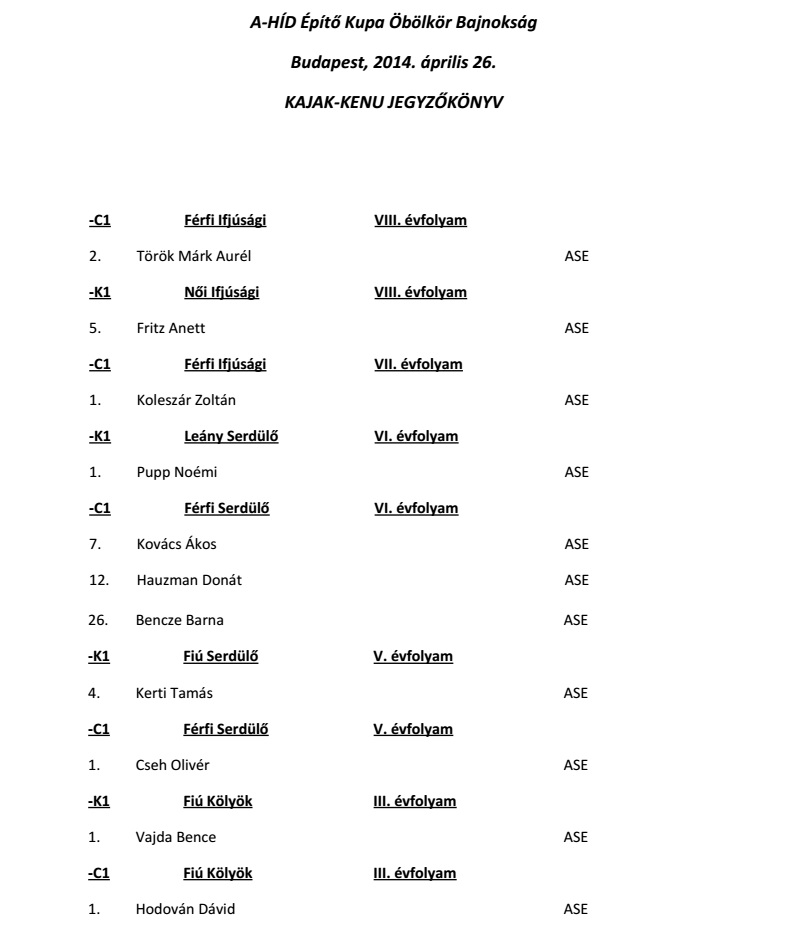 Kajak-kenu szakosztállyal kapcsolatos legfrissebb hírek